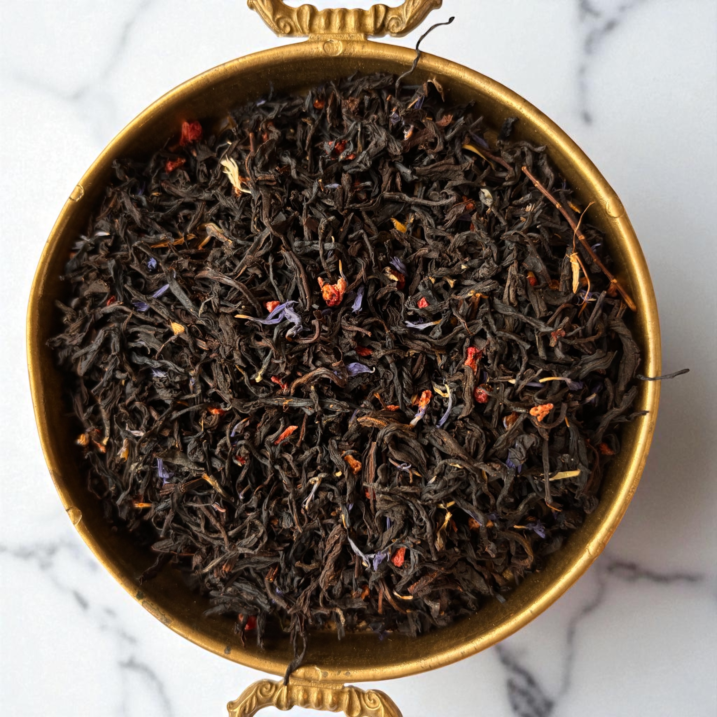 - elegancka czarna herbata z dodatkiem kwiatów bławatka